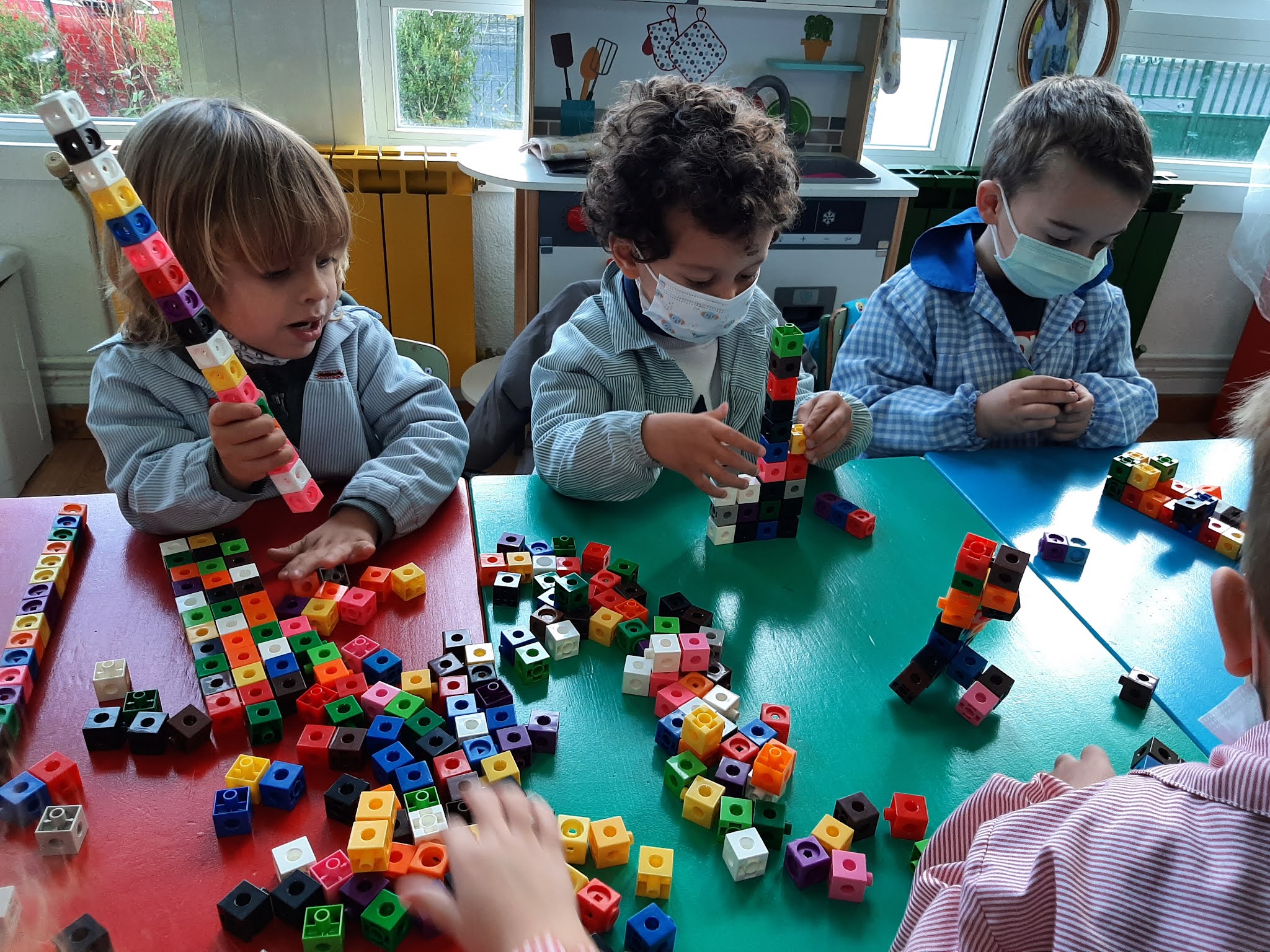 Cada quen escolle a que quere xogar , uns no club , deitados xogando as familias , mentras a mamá lles conta un conto , outros co tren , coas pezas de construción , cos animáis, debuxando ...... Xogo libre